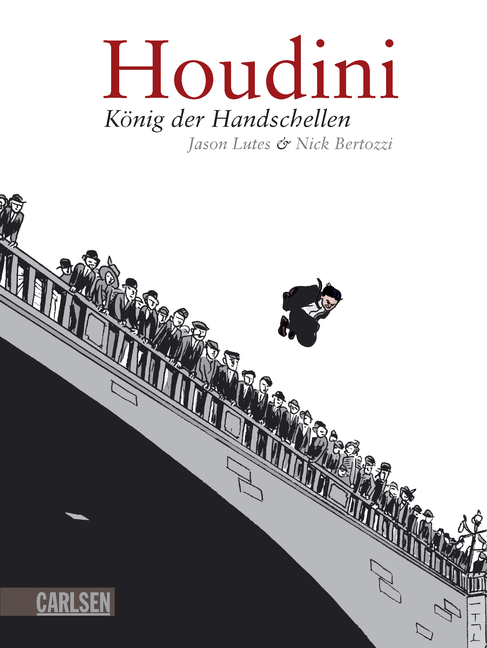 Mit „Houdini“ widmet sich Jason Lutes dem legendären Entfesselungskünstler … Bereits in seinem Album „Narren“ kam er vor, hier webt Lutes die Geschichte des Zauberers raffiniert in die Vorbereitungen zu einem seiner beeindruckenden Vorführungen ein. Der Band wird als Graphic-Novel vermarktet, das sieht Carlsen ja nicht so eng. Die Geschichte wirkt allerdings eher wie eine Novelle im Sinne des deutschen Wortes, nicht wie eine Novel, was ja hierzulande ein Roman wäre. Sowohl die Erzählzeit als auch die erzählte Zeit ist kurz. Das macht aber nichts, denn der Spannungsbogen legt sich schwungvoll über die Story. Das Schelmenstück hat Nick Bertozzi in klaren, kontrastreichen Zeichnungen illustriert.